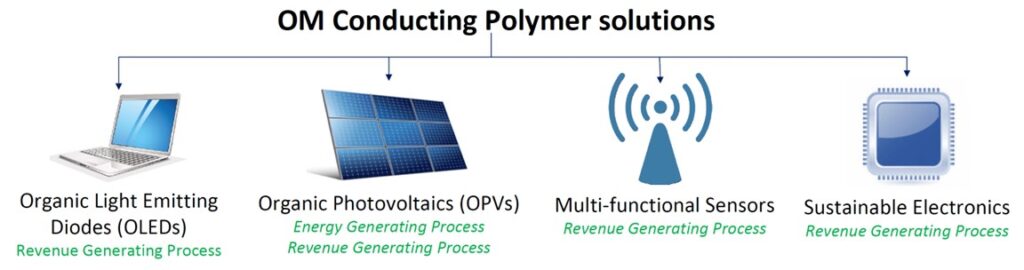 Conjugated polymers hold vast potential in emerging fields such as organic solar cells (OSCs), organic field-effect transistors (OFETs), wearable electronics, artificial organs, and high-sensitivity sensors. OM Sciences leads in developing these materials, leveraging expertise in organic synthesis to create advanced functional materials and drive the future of organic electronics.